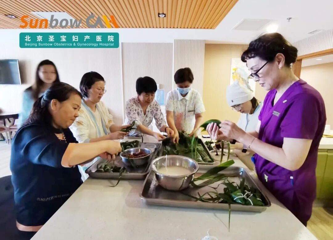 端午将至,圣宝母婴健康中心月子的妈妈们正在一起包粽子。折粽叶、填糯米、裹叶子、扎线,一道道工序,一步步进行,稍不留意就可能出现漏米的情况,妈妈们小心翼翼,就像是在呵护宝宝一样,丝毫不敢掉以轻心。一片片清香的粽叶、一粒粒晶莹的糯米,在一双双巧手下变成一个个诱人的粽子,这也是送给宝宝最好的礼物。